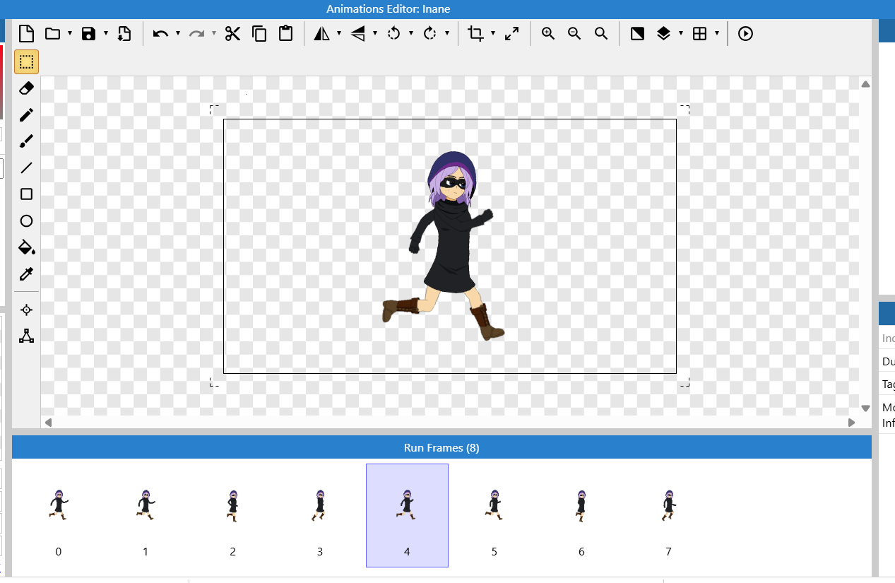 This character is currently being implemented in a game under development in Construct 3, where Inane plays a central role in gameplay and animation testing.